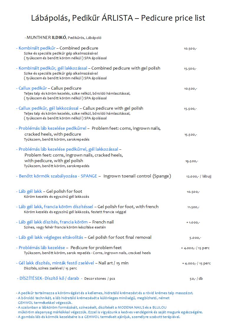 MUNTNER ILDIKÓ - Pedikűr, Lábápolás